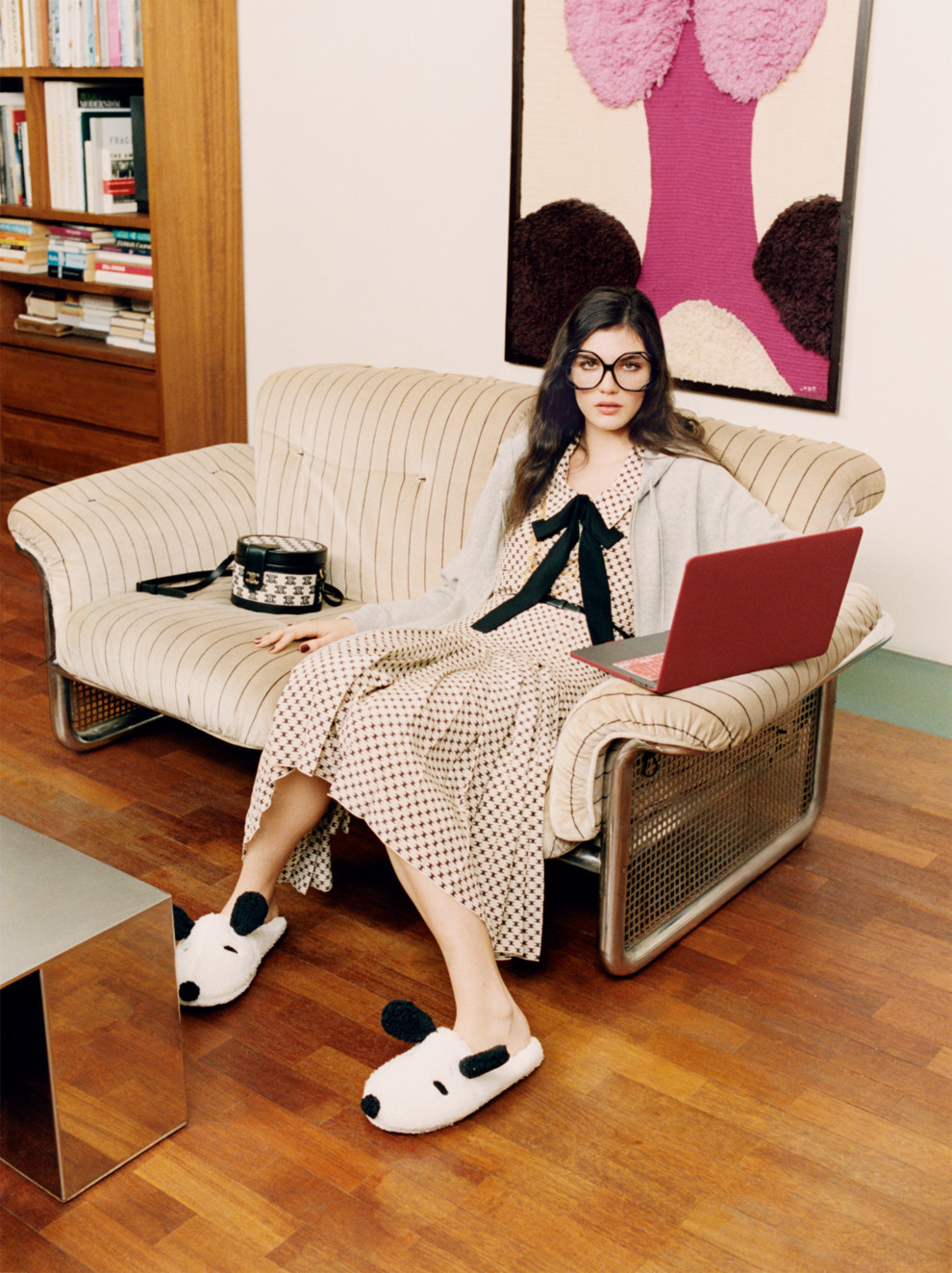 Бороздить Zoom-просторы полагается в шелковых блузах с бантами и кардиганах леденцовых расцветок – как на героинях фоторепортажей Слима Ааронса.