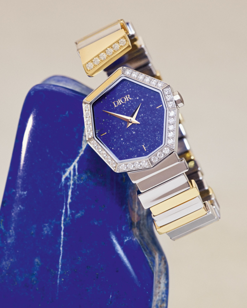 Часы Gem Dior, сталь, желтое золото, бриллианты, лазурит, кварцевый механизм, Dior JoaillerieРаботая у Карла Лагерфельда, она придумывала ему украшения для показов. Особый жанр, где каждая вещь должна что-то высказать и даже прокричать, чтобы последнему маленькому журнальному стилисту в последнем ряду все стало ясно без очков. Артистичные, крупные, цветные, веселые фейки. Как называют их, «фантазийные украшения».