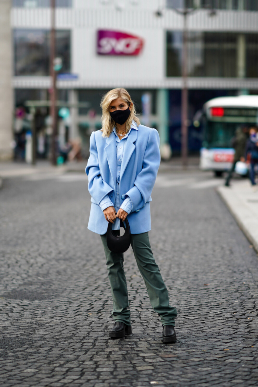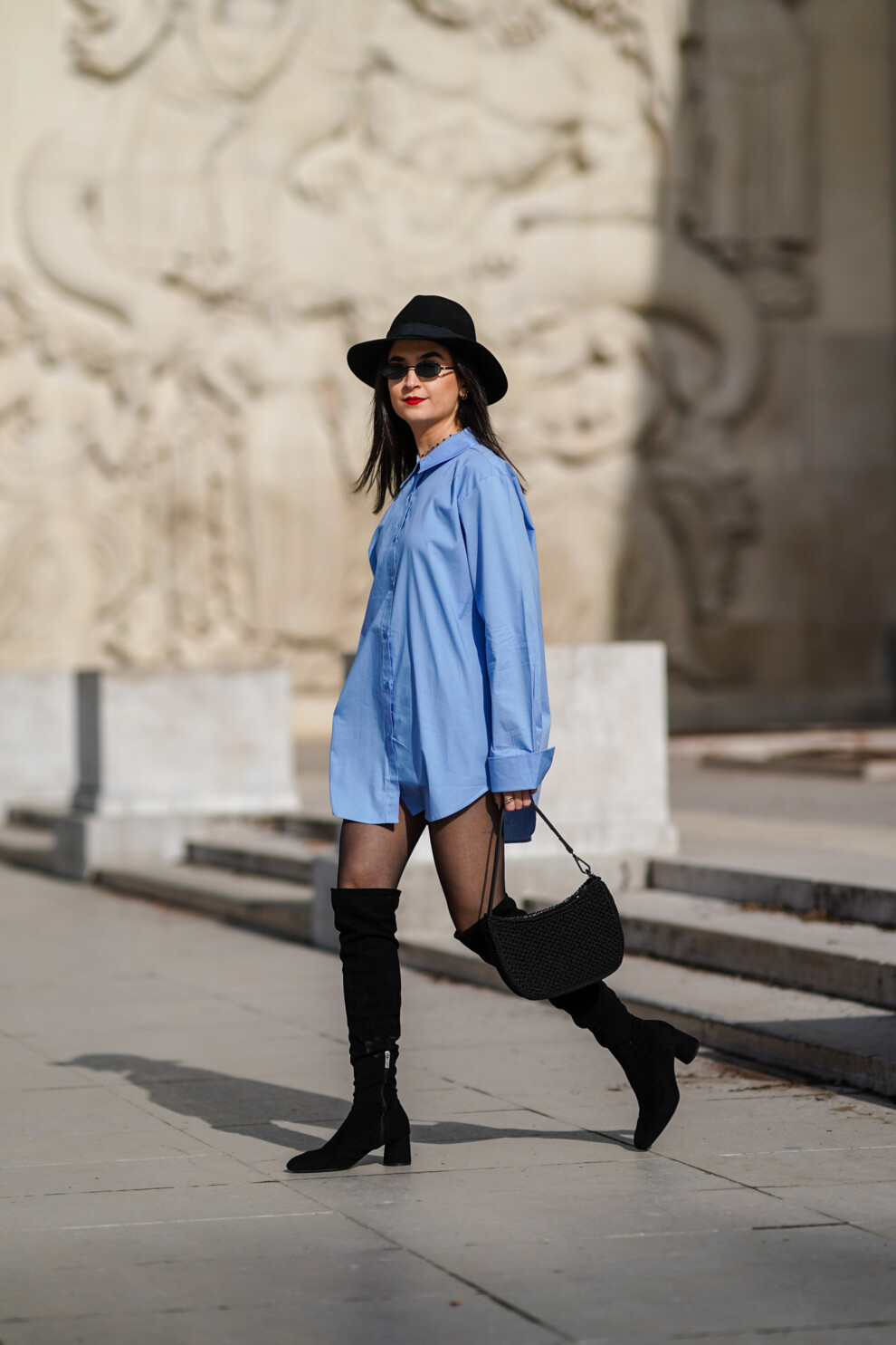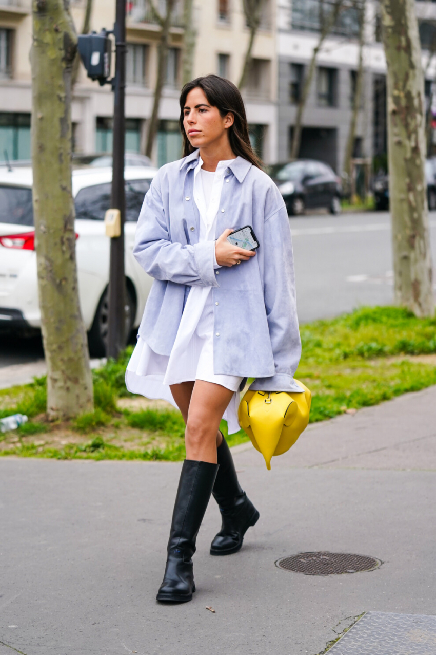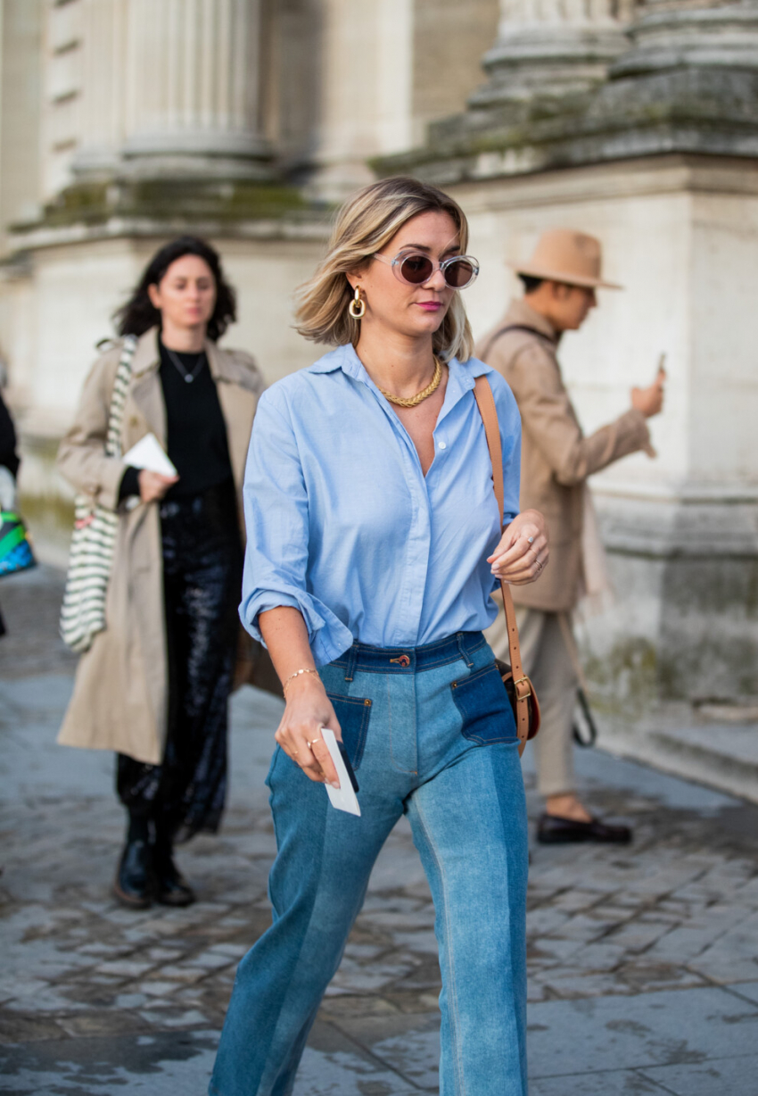 Streetstyle: с чем носить голубую рубашку этой весной - «Уличный стиль»