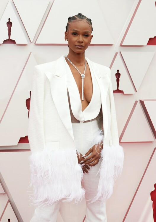 Андра Дэй в украшениях Tiffany & Co.Голливудский гламур стал негласно главной темой вечера на красной дорожке. Девушки примеряли дорогостоящие украшения, ослепляющие своей красотой. Так, Мария Бакалова появилась в образе принцессы: актриса примеряла белоснежное пышное платье Louis Vuitton в паре с длинными серьгами, бриллиантовым колье и кольцами израильского бренда Moussaieff Jewelers, Андра Дэй стала обладательницей ювелирных изделий Tiffany & Co, а Ванесса Кирби сделала ставку на элегантность и минимализм, выбрав бриллиантовое ожерелье Cartier.