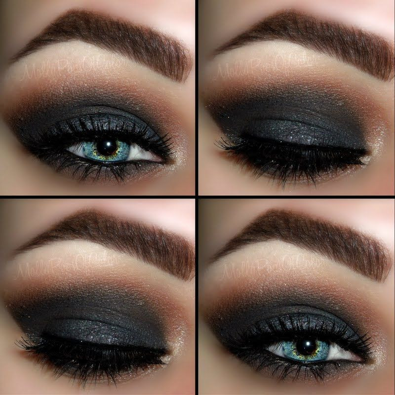 Для красивых голубых глаз больше подходят насыщенные и глубокие тона: разные оттенки коричневого, серого и сиреневого. Также можно использовать классический черный цвет. Вечерний макияж дополнят аккуратные стрелки. Главное – не переусердствовать, чтобы создаваемый образ не получился слишком вычурным и перегруженным.