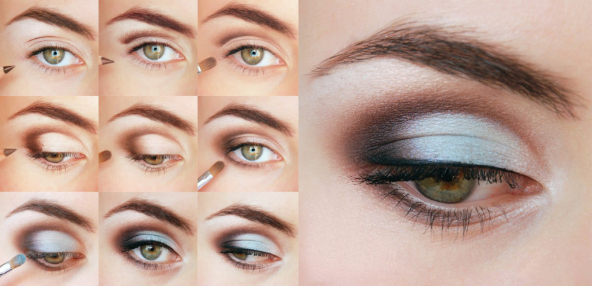 Дымчатый макияж предполагает смешение серого и синего цветов. Его результатом становится что-то вроде смоки «с дымком»: