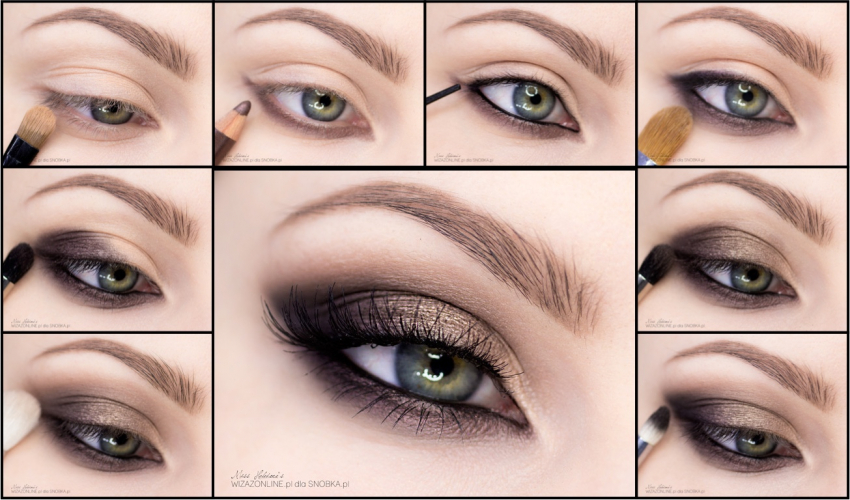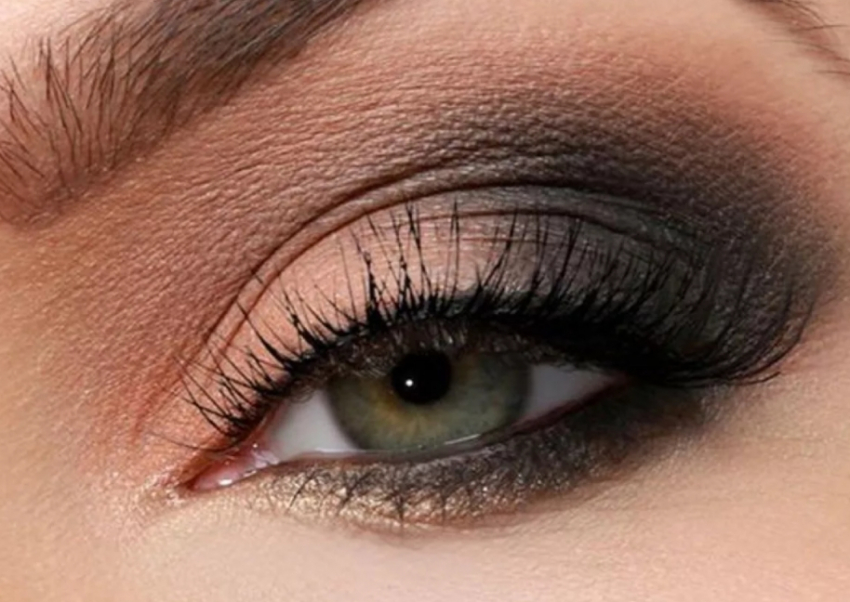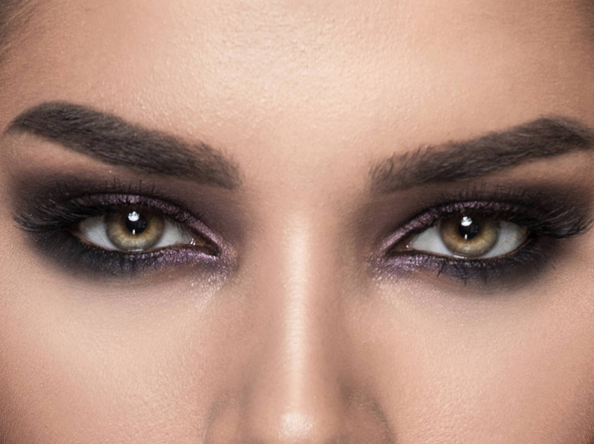 «Смоки айз» может быть выполнен не только в классических серых тонах, но и в лиловых, пудровых, сиреневых, в разных оттенках зелени, рыжего и бронзового.