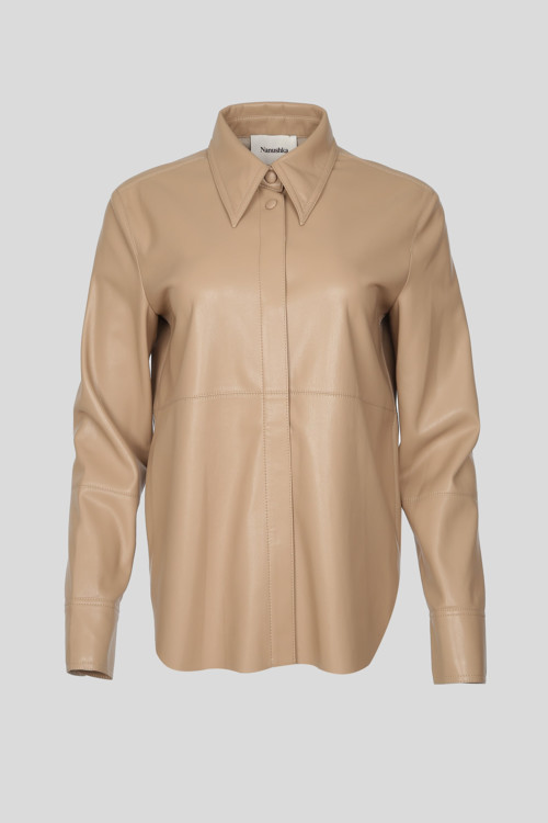 Бежевый продолжает определять модную повестку дня, ведь с его оттенками легко выстраивать и многослойные луки, и собирать минималистичные образы. Для поклонников лаконичности венгерский бренд Nanushka придумал отличный вариант на каждый день – костюм, состоящий из прямых брюк и объемной сорочки. Носить можно как вместе, так и по отдельности. А дополнить образ помогут сабо JW Anderson, мягкая сумка-клатч THEMOIRe с тиснением под крокодила и серьги Reliquia.