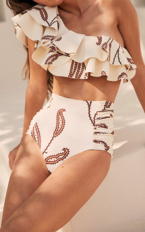 - В моде в 2022 году сплошные купальники, чувственные бикини, двойные и тройные комплекты в спортивном стиле и модели с завышенной талией.