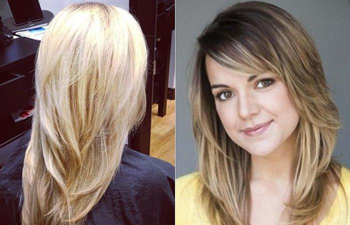 Удлиненный каскад состригают, оставляя макушку на 10 см длиннее. Слоистость появляется с ушных мочек, у лица прядки более длинные.