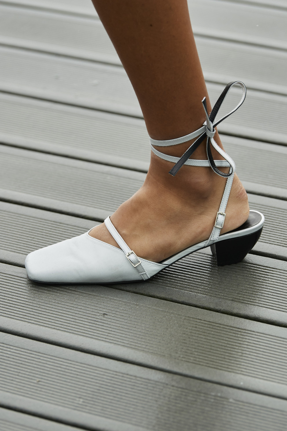 Ports 1961Мотивы 1990- х годов не покидают головы дизайнеров. Вслед за спортивными брюками, топами на токих бретельках, сумками-багетами и бейсболками, бренды воспели туфли с квадратным мысом. Drome признались в любви белоснежной паре, которая идеально впишется в летний деловой гардероб, Coperni показали туфли с открытой пяткой и всевозможными ремешками вокруг щиколоток, а Salvatore Ferragamo представили фигурные туфли, для девушек, которые любят эксперименты со стилем.
