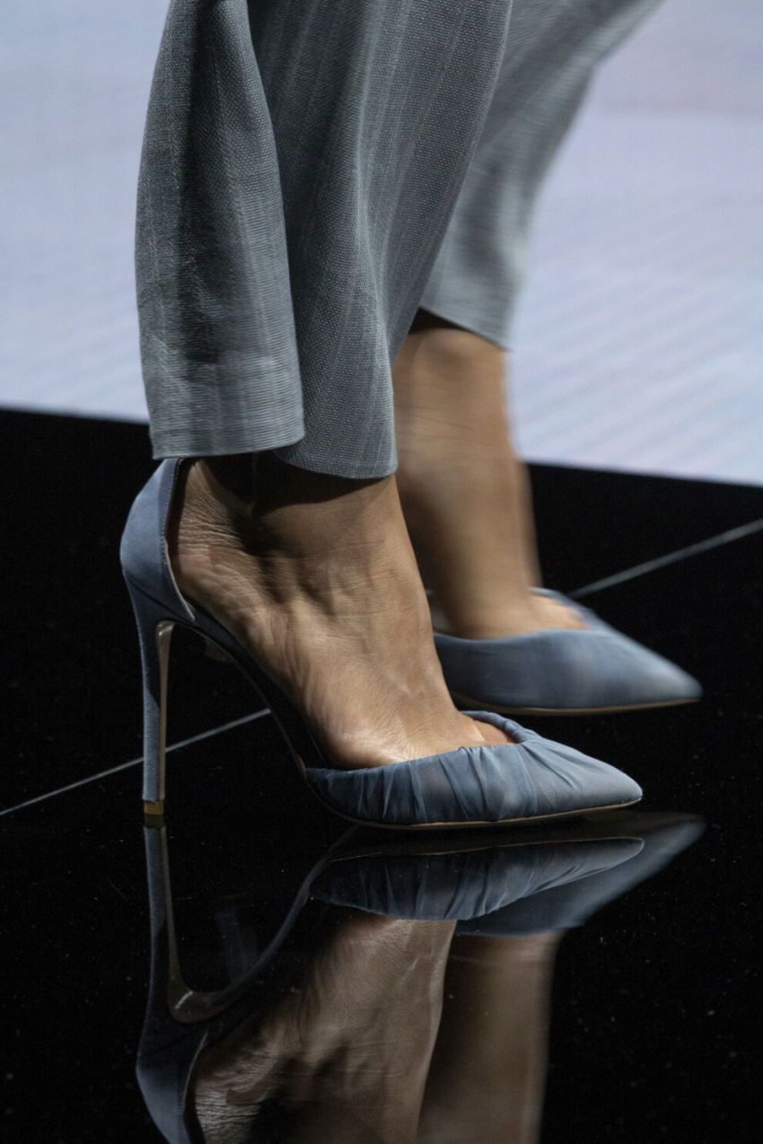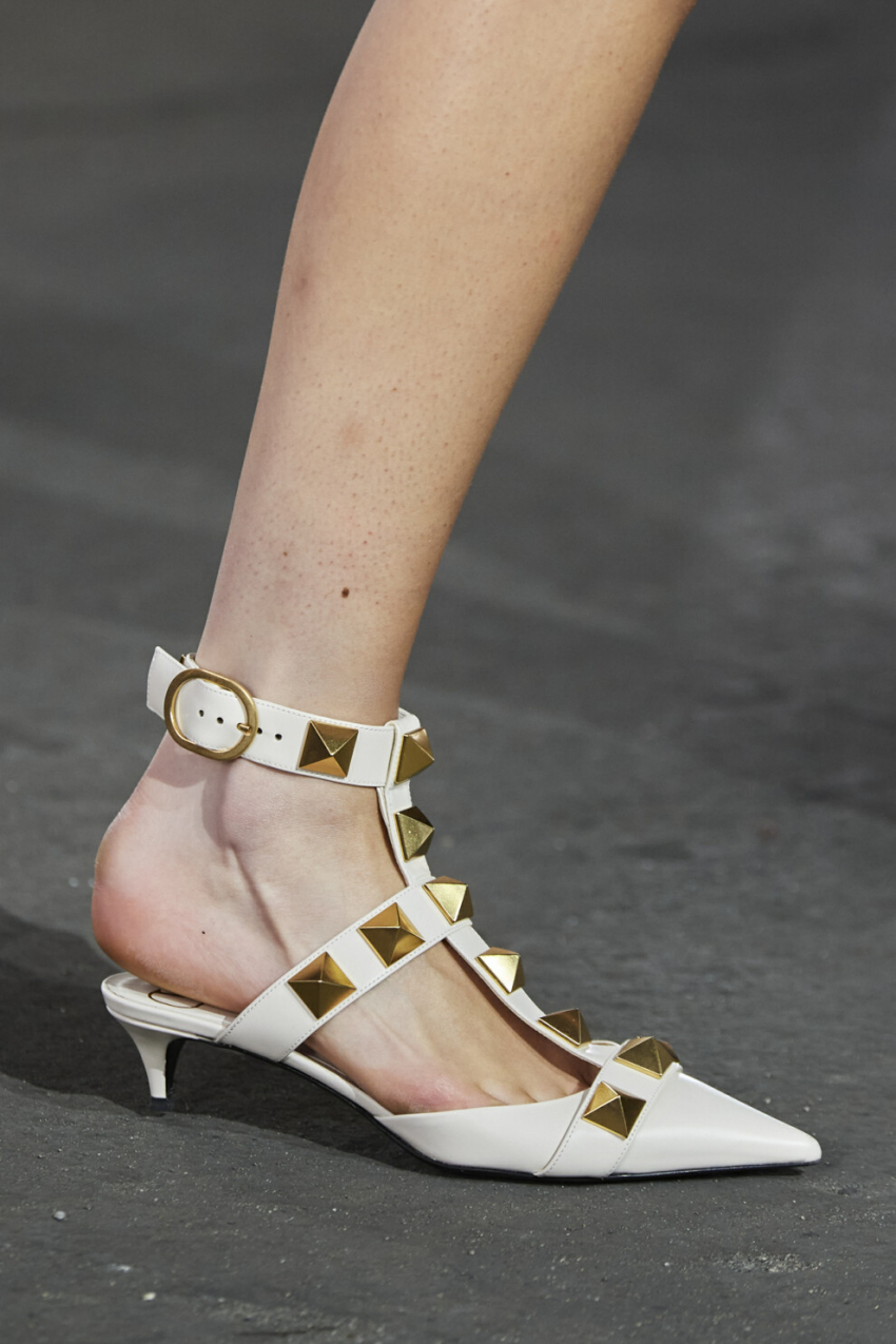 ChanelОтличительной деталью актуальных туфель этой весны являются ремешки на щиколотках. Несмотря на то, что эта обувь может визуально укоротить силуэт, дизайнеры предлагают прежде всего делать ставку на комфорт в этом сезоне. Туфли на высоком каблуке с ремешком на щиколотке в коллекции Max Mara были настолько элегантными, насколько это возможно - бренд показал модель с жестким острым носком и тонким ремешком несколько раз охватывающим щиколотки в классических нюдовых или коричневых тонах. Тем временем, Ports 1961 предложили эффектные золотые пары, а Alessandra Rich - вечерние туфли с двойным ремешком.