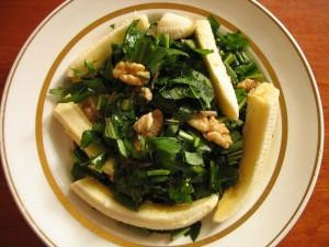Салат из зелени можно разнообразить, добавив к нему банан. Им можно заменить киви.
