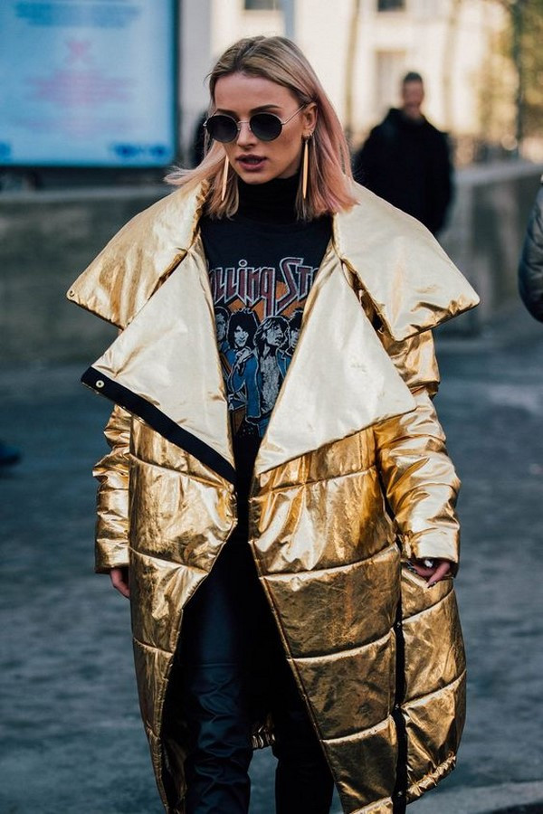 В прошлом сезоне такие куртки завоевали сердца многих модниц. Именно поэтому дизайнеры решили вернуть их в свои коллекции. Светоотражающим может быть как весь пуховик, так и некоторые его детали. Такая куртка не только модная, но и практичная. Особенно в зимний период, когда на улице начинает рано темнеть.