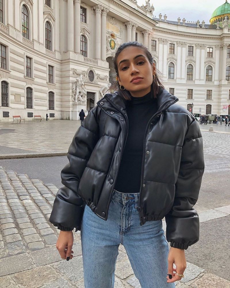 Длина изделия зависит от того, где девушка собирается зимовать. В европейских странах сильных морозов не бывает, поэтому женщины могут выбрать укороченный пуховик. Куртка по пояс отлично будет смотреться с высокими джинсами и ботинками челси на толстой подошве. Короткие пуховики также подойдут для зимовки в южной части России.
