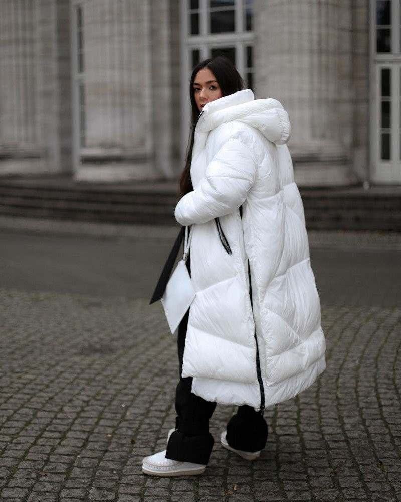 Длинные пальто оверсайз подходят для морозной зимы. В них уютно и тепло даже при очень низких температурах. Именно поэтому такие пуховики невероятно популярны.