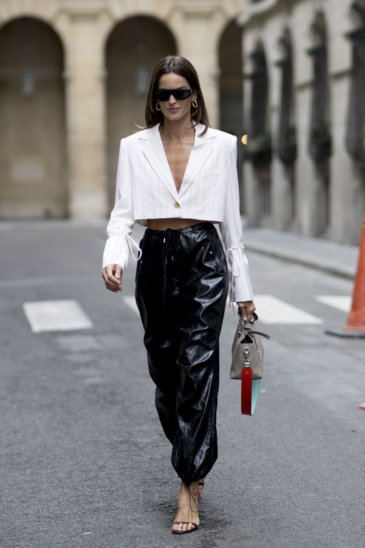Кожа остается также в тренде, а пиджак из этого материала становится универсальным.