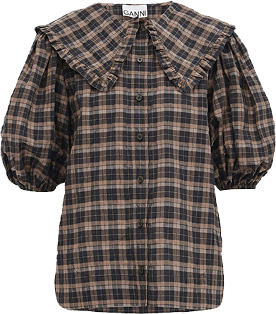 Блуза GANNI, юбка Jil Sander, сумка Muzungu Sisters, ремень Saint Laurent, обувь Bottega Veneta