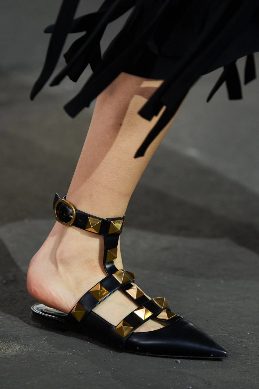Louis VuittonВ прошлом сезоне мир моды захватили всевозможные ботинки и туфли с квадратным носком, но весенне-летние коллекции вернули на модный Олимп остроносые модели – Valentino, Sportmax и Francesca Liberatore сделали ставку именно на такую обувь, срифмовав ее с хлопковыми сорочками в духе рабочей униформы, юбками с бахромой и кружевными полупрозрачными макси-платьями.