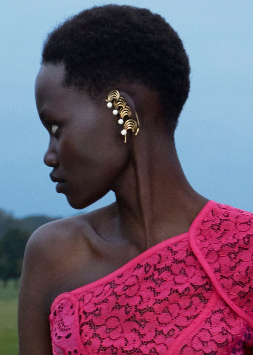 Vivienne HuЭтой весной дизайнеры советуют делать ставку на жемчуг, с помощью которого можно создать изысканный и элегантный образ. Дизайнер Симона Роша известна своими экспериментами с жемчугом, который является визитной карточкой бренда. В этом сезоне марка предлагает выбирать драматические многоярусные серьги-люстры. Тем временем Chanel предложили романтичные серьги с розовыми камнями и изысканными жемчужинами, а Adeam воспели сложносконструированные модели.