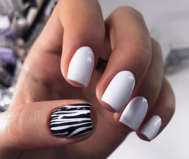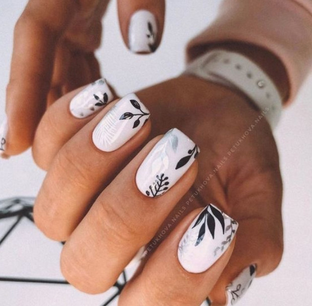 Не лишним дополнением для белоснежного летнего маникюра станут узоры: ветви и листва, птицы и цветы, абстракция, орнаменты. Также можно применять маленькие камни, гель-краску паутинку или переводную фольгу.