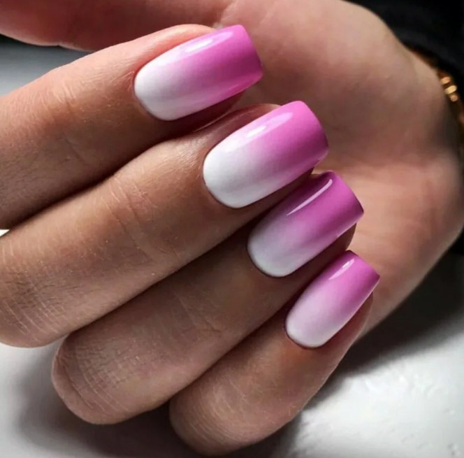 - Посредством градиента можно воплотить в жизнь непревзойденный нежный нейл-арт для квадратных ноготков.