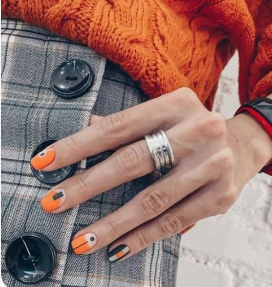 - Эффект «перепелиных яиц». Небольшие вкрапления на ноготках, напоминающие узор на яйцах маленьких перепелок стал трендом предстоящего года. Подобный нейл-арт может быть украшен надписями, графичной геометрией и абстрактными мотивами.