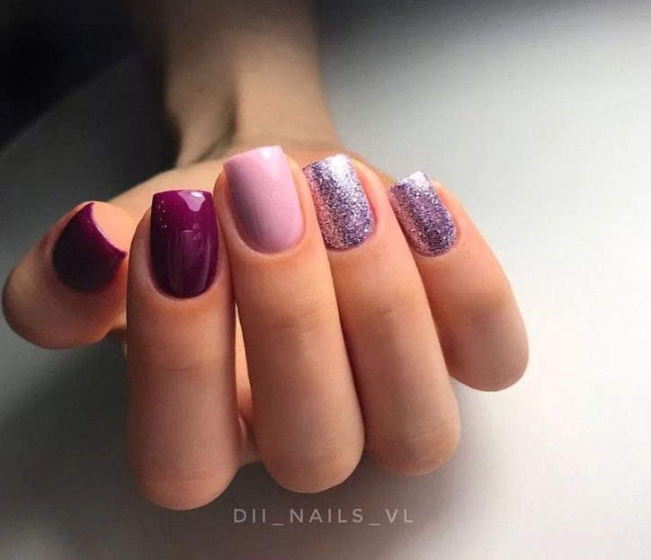 Розовый маникюр также доступен в пудровом исполнении. Благодаря этому он будет чуть более женственной альтернативой классическому бежевому, подходящему для работы.