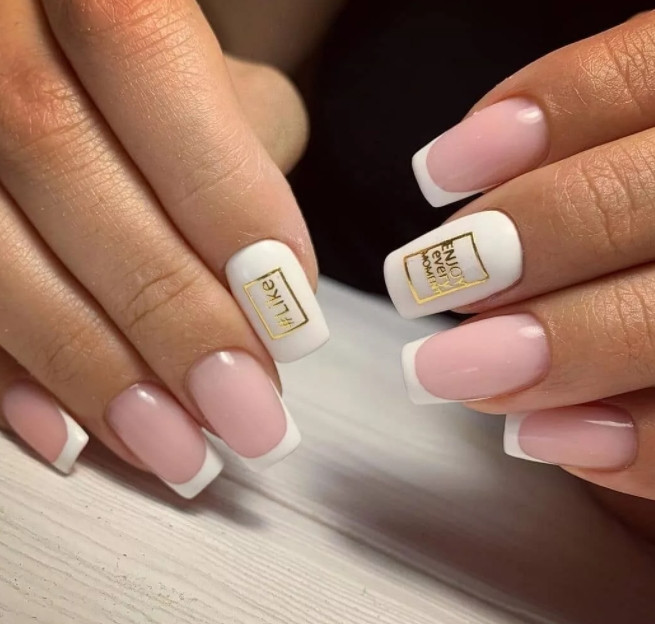 - При желании можно реализовать на квадратных ногтях абсолютно любую понравившуюся идею. В последнее время все более актуальным становится маникюр с тематическими надписями. Он обещает быть актуальным и в 2021 году.