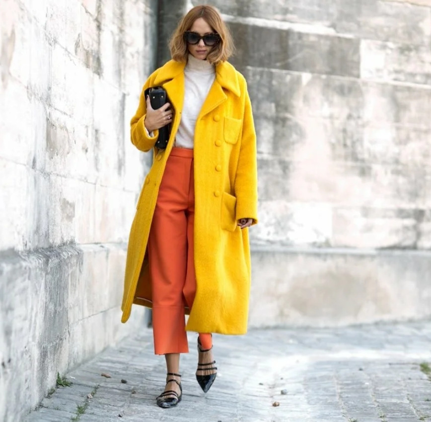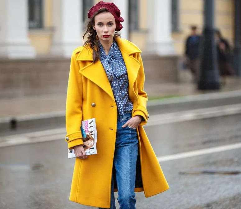 Отдавать предпочтение нужно насыщенным и ярким пальто, плащам, курткам таких цветов:
