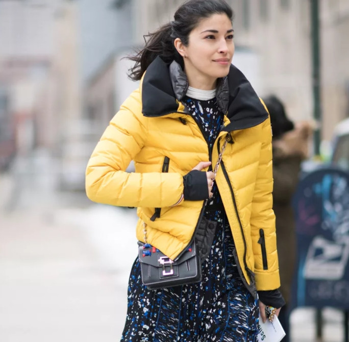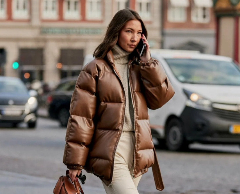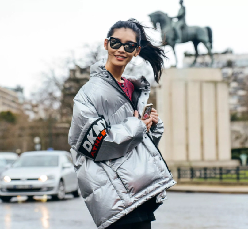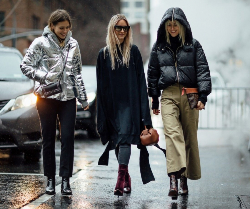 - яркие и блестящие пуховики.