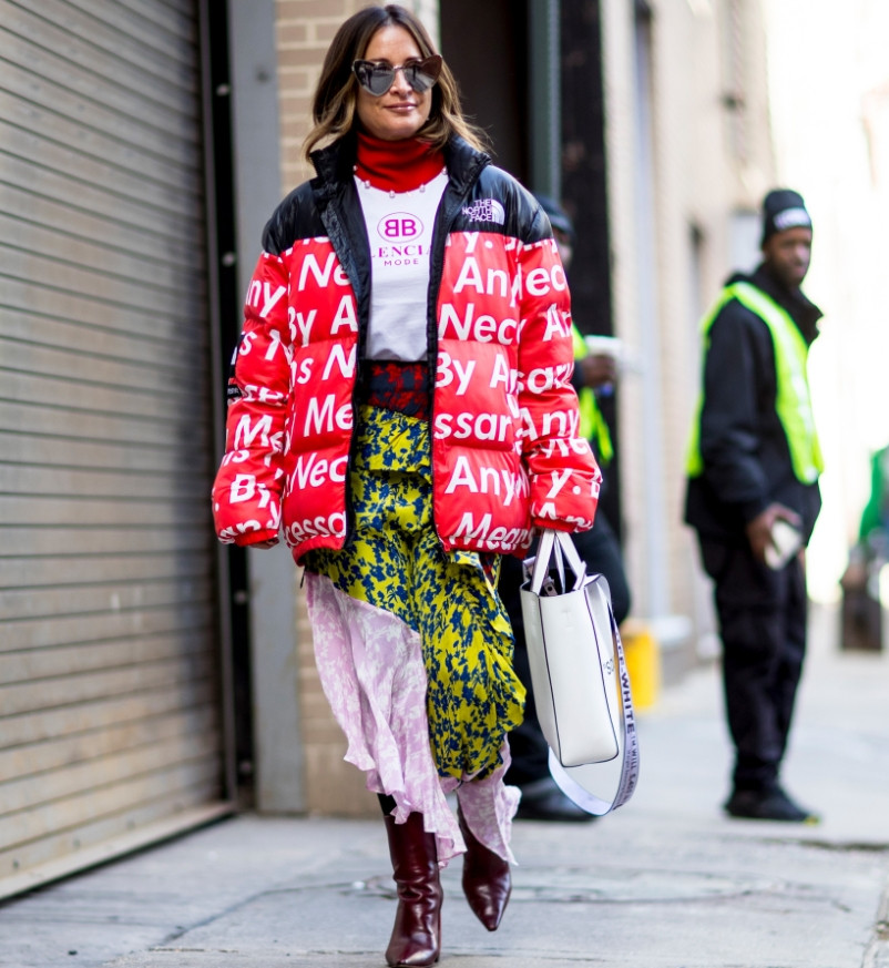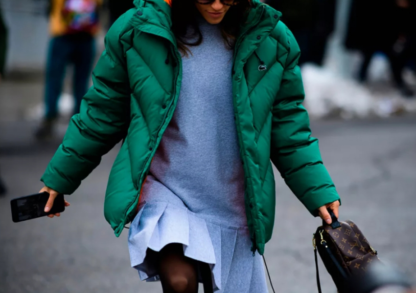 Среди топовых моделей пуховиков можно отметить модель-трапецию, расклешенную книзу. В этом же сезоне на модном подиуме присутствуют куртки-платья. Низ подобного фасона пошит в форме юбки, а длина может варьироваться.