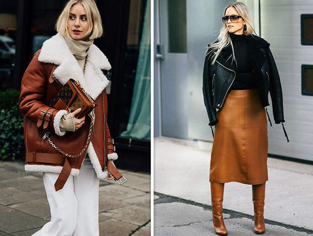 Укороченная модель с отложным двубортным овчинным воротом, накладными карманами и манжетами из овчины способна добавить любому луку стиля и шарма. Куртка-авиатор превосходно подойдет для повседневного образа. С ней можно комбинировать грубые ботинки или низенькие полусапоги. В дуэте с дубленкой-авиатором восхитительно будет смотреться длинная юбка в пол, трикотажное платье миди, зауженные джинсы или лосины.