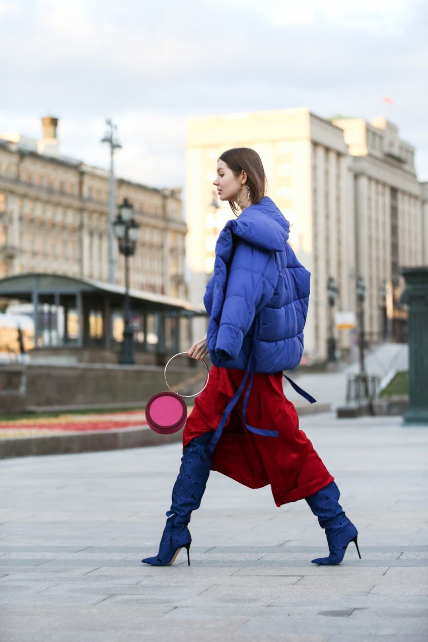 В моде как длинные, так и короткие пуховики, а также длина миди и по колено. В тренде модели с асимметрией и большим откатным воротом, застежками и молниями, объемными карманами.