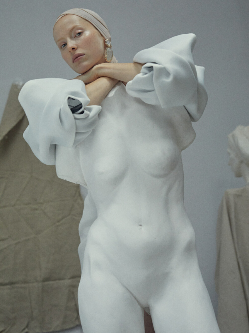 Боди: создано на модели из старого манекена. Головной убор: Nuthatch. Пальто: Scotch & ClayФото: Weronika Kosińska | IG: @weronikakosinska | www.weronikakosinska.com