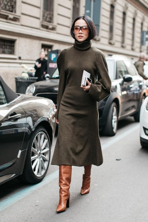 Для офиса может подойти и классическое платье из плотного трикотажа. В нынешнем сезоне самыми популярными моделями стали платья-миди с высоким воротом, которые великолепно смотрятся в однотонной цветовой гамме. Вопреки своей минималистичности, такое изделие всегда очень эффектно.