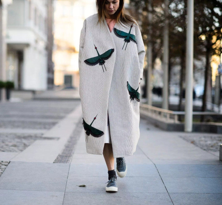 Мегастильными фасонами пальто остаются модели в стиле оверсайз и кокон. Их можно было встретить на модных подиумах в предыдущем сезоне. Сейчас же дизайнеры выполнили их в нестандартных расцветках и со всевозможными принтами.