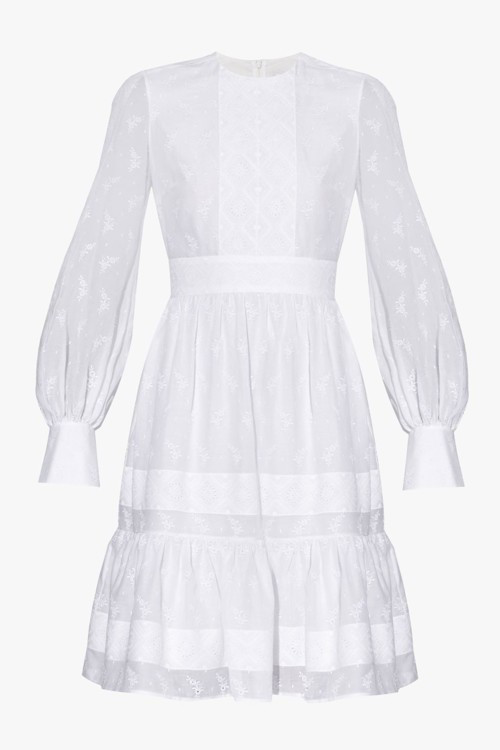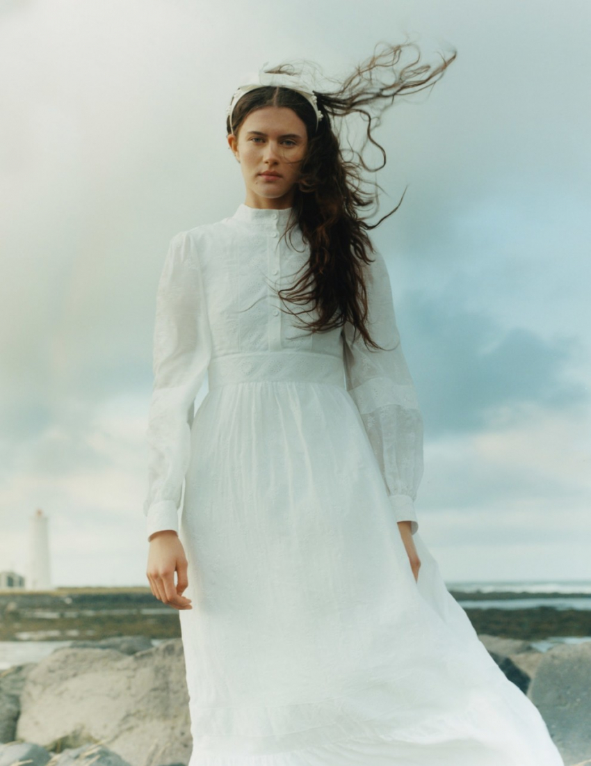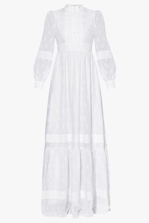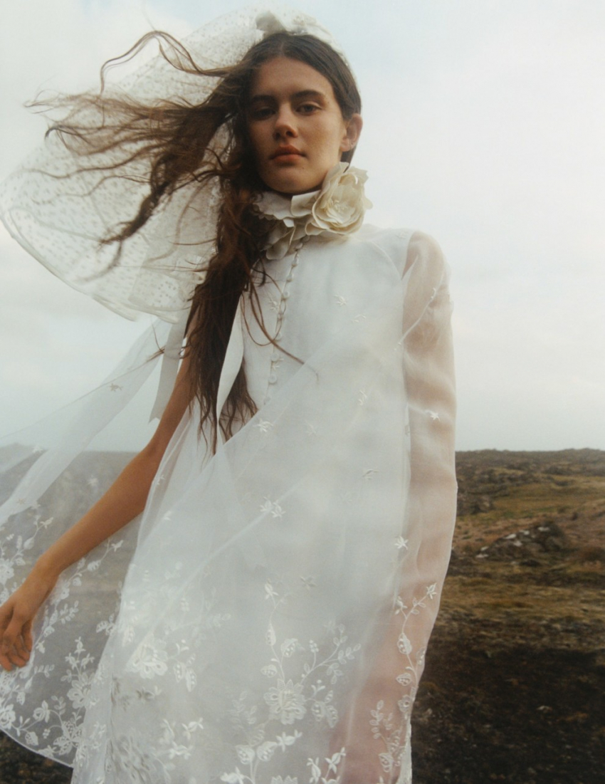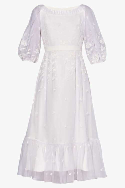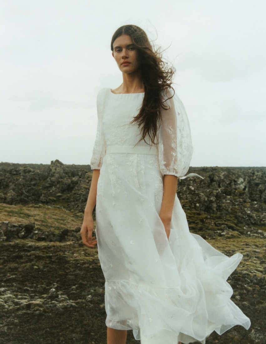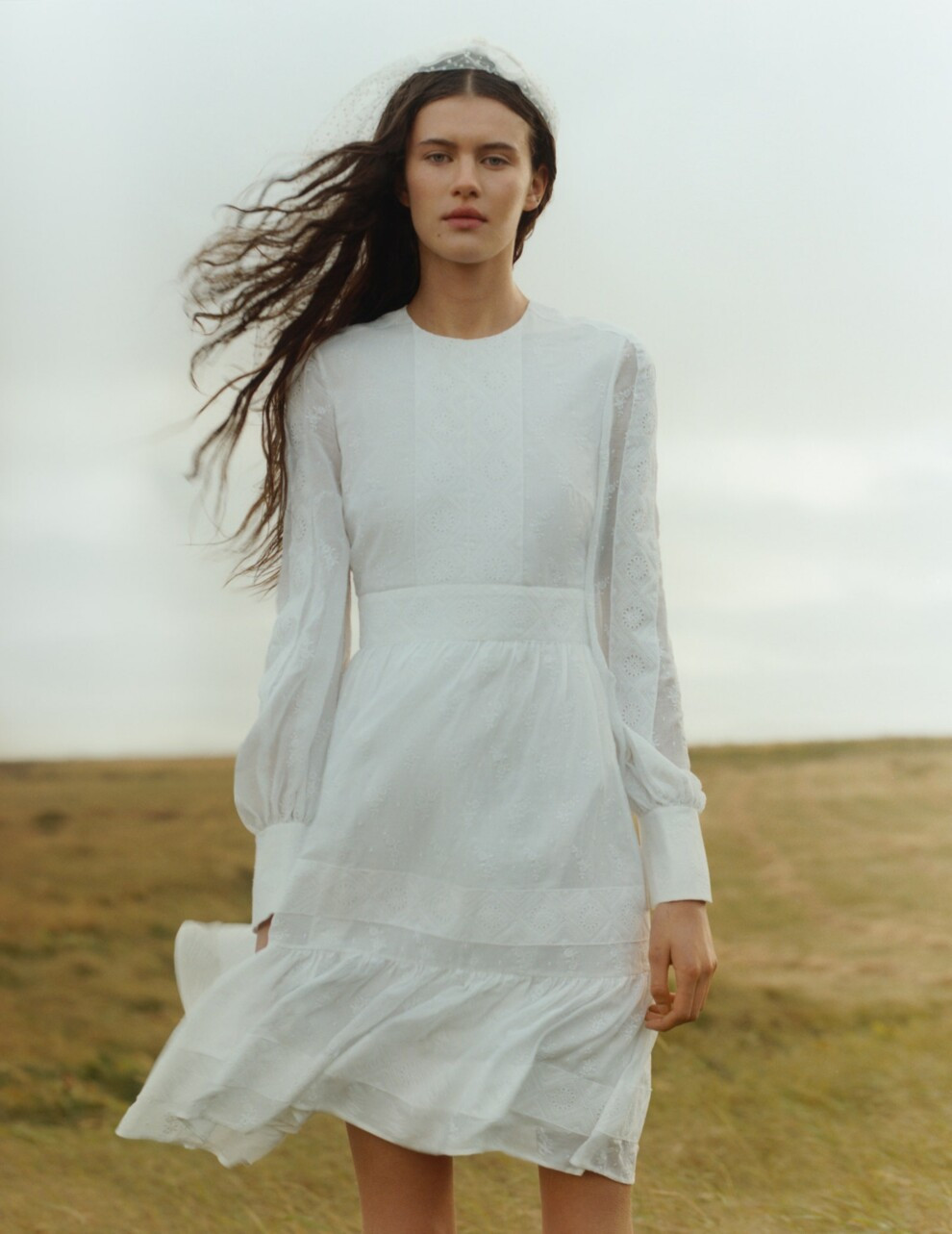 Erdem White CollectionErdem уже давно задумывались о создании свадебных платьев, однако искали подходящий угол для их линейки. После многих лет разработки свадебных платьев на заказ исключительно для частных клиентов, дизайнер использовал период пандемии, чтобы подумать, что он может предложить невестам. В результате на свет появились женственные и романтичные платья с отсылками к викторианской эпохе. Так, в коллекции представлены: мини-платья из хлопковой английской шерсти, расшитые платья-миди с прозрачными рукавами-фонариками, платье-рубашка А-силуэта, увенчанное накидкой из органзы.
