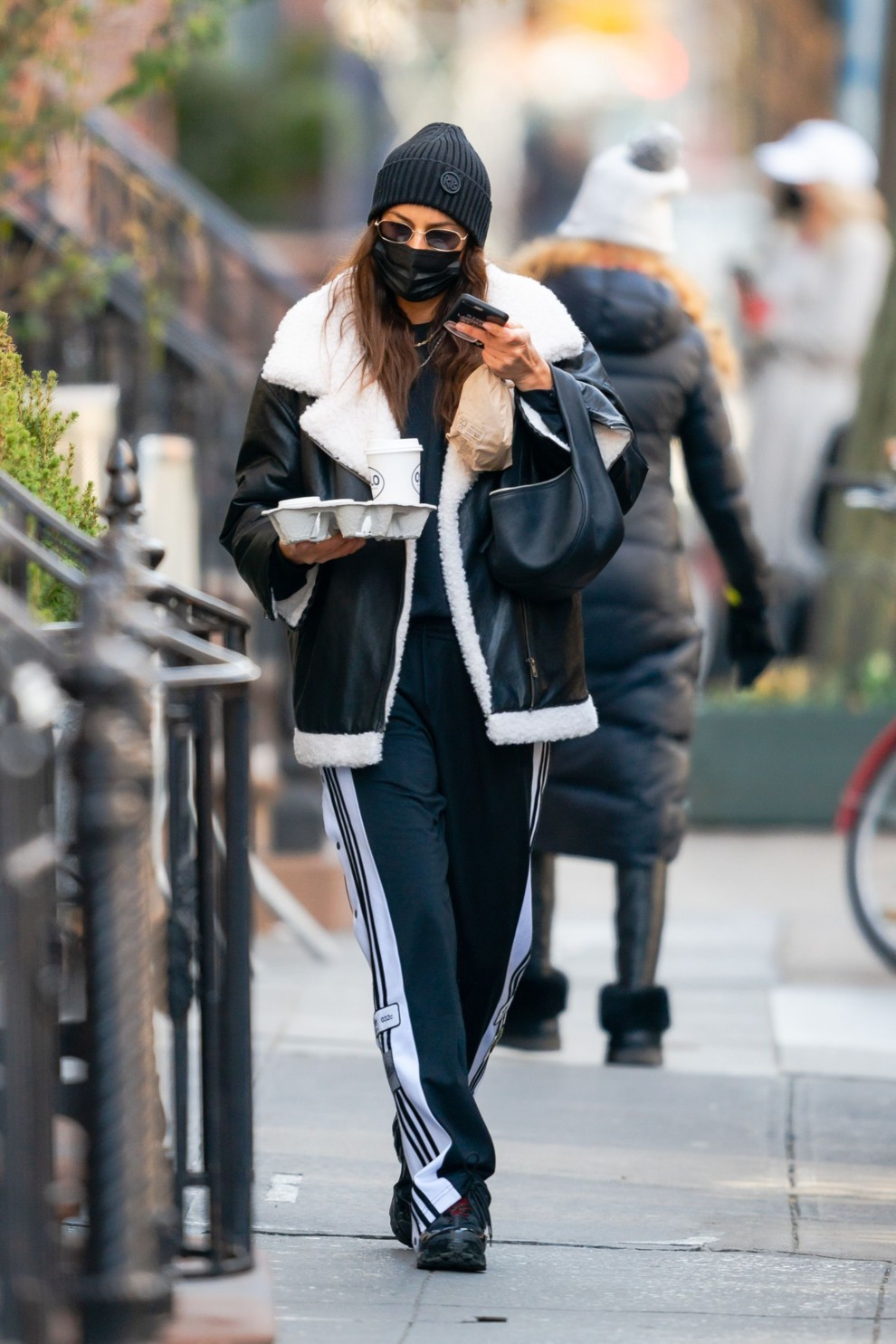 Ирина ШейкЭтой зимой, чтобы выдержать нью-йоркский холод, просто необходимо утепляться, что и сделала Ирина Шейк. Модница дополнила свои брюки в винтажном стиле с помощью дубленки Hansen & Gretel, массивных кроссовок Burberry Arthur, вязаной шапки Ruslan Baginskiy, солнцезащитных очков Illesteva и своей заветной сумки By Far Cush. Vogue.ua предлагает взглянуть на 10 спортивных пар брюк в стиле Ирины Шейк.