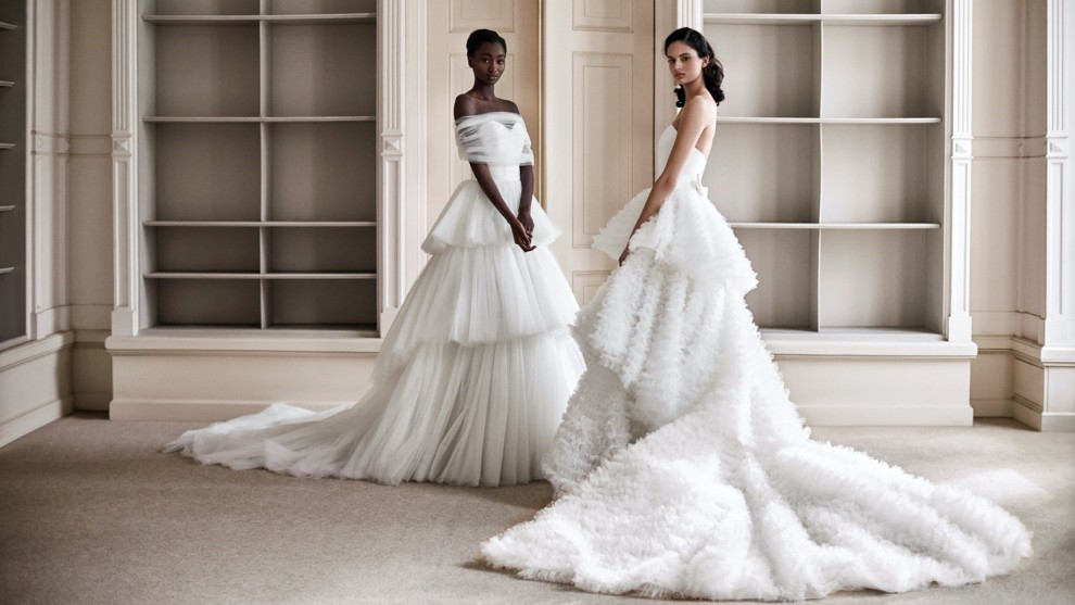 Victor & Rolf Bridal весна-лето 2021В 2021 году свадебные платья-бюстье все также актуальны. В коллекциях брендов можно встретить минималистичные варианты из молочного атласа, пышные королевские платья с многоярусными слоями фатина, модели с цветочной вышивкой, кружевные образы силуэта "русалка" и дерзкие мини со шлейфами. Vogue.ua собрал 10 самых красивых свадебных платьев-бюстье 2021 года.