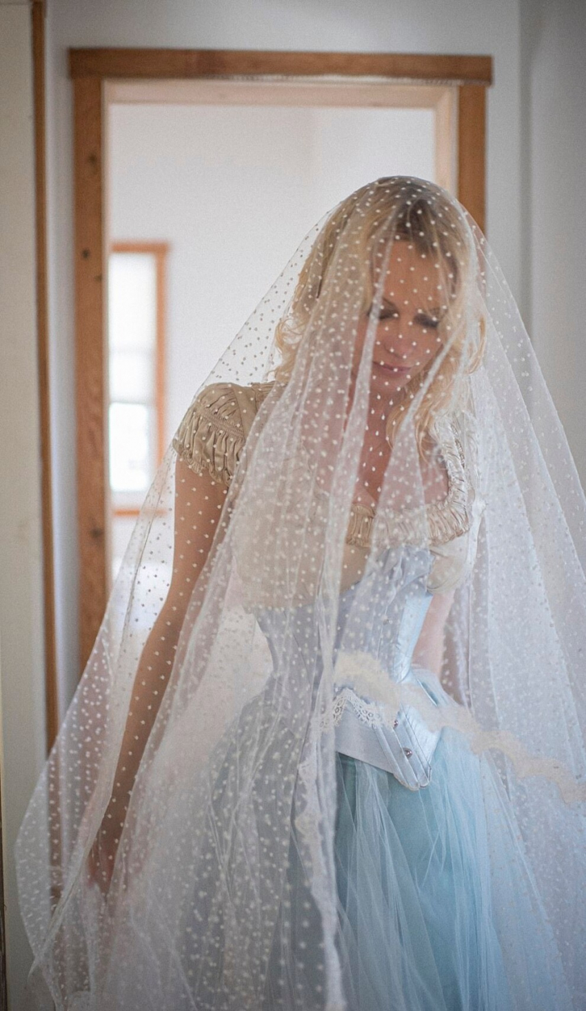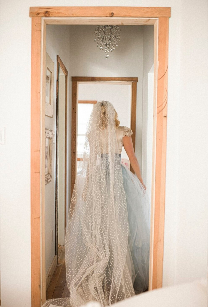Свадебное платье Памелы АндерсонВ качестве свадебного наряда Памела выбрала винтажный образ в стиле Золушки. Первым элементом ее образа стала атласная комбинация в стиле 1940-х годов, затем была надета пышная пастельная юбка из тюля Joanna Delaney Bridal. которую она сочетала с шелковым корсетом с голубой лентой Lace Embracel. Завершить романтический образ Андерсон решила длинной фатой в горошек Valentino. "Сейчас я именно там, где мне нужно быть, — в объятиях мужчины, который по-настоящему любит меня", — поделилась Андерсон.
