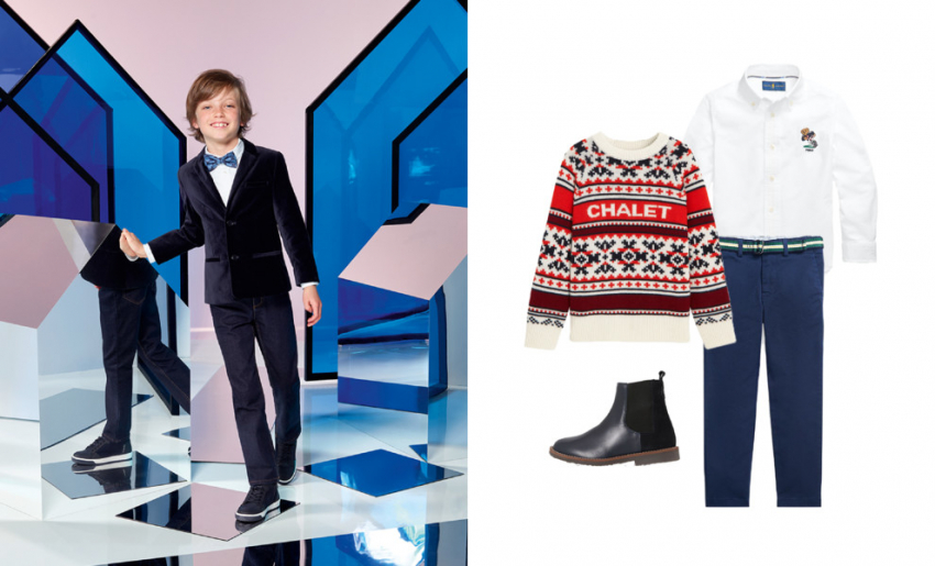 JACADI PARIS. Свитер, сапоги, все - Jacadi Paris; рубашка, брюки, все - Polo Ralph LaurenПорадовать ребенка в новогоднюю ночь помогут технологичные игрушки-гаджеты, качественная пижама и одежда для дома, а также актуальные аксессуары.