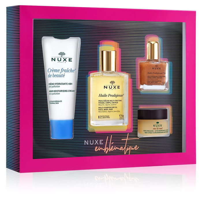 Созданное в 1991 году сухое масло для лица, тела и волос Huile Prodigieuse покорило не один миллион сердец. При изготовлении этого масла используются семь 100% растительных масел холодного отжима, что позволяет сохранить все полезные вещества и добиться лучшего качества. В подарочном наборе сухое масло для лица, тела и волос HUILE PRODIGIEUSE представлено в двух вариантах: классическое и мерцающее.