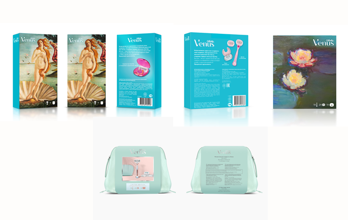 В наборах с шедеврами Моне, Ван Гога и Ботичелли — Venus Comfort Glide и две сменных кассеты с гелевыми подушечками. Кассеты содержат легкие масла для тела, благодаря которым лезвие плавно скользит по коже. А эксклюзивный аксессуар для хранения бритвы станет настоящим украшением ванной комнаты и обеспечат дополнительную защиту и гигиену лезвий.