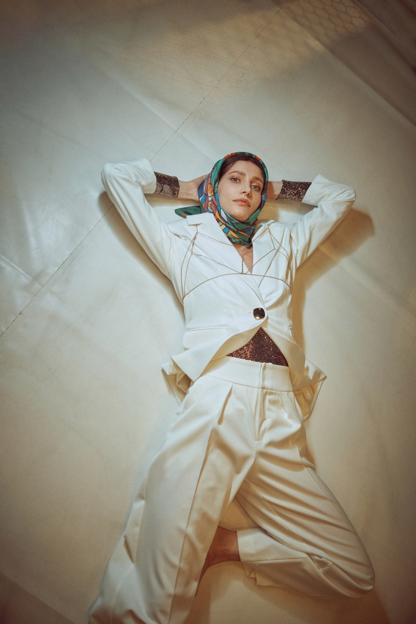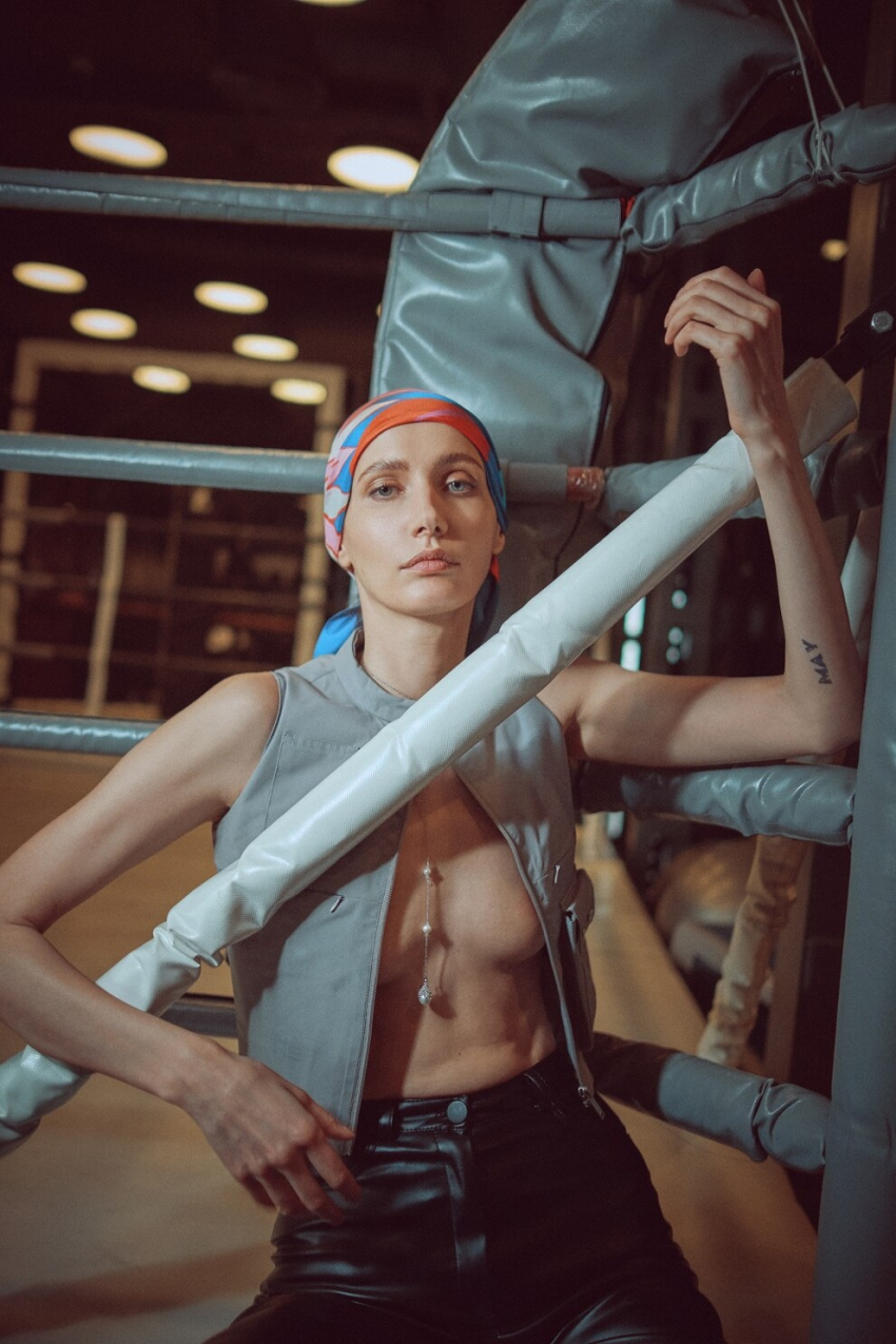 Костюм Motrya, сумка GucciИнтересно выглядит и подборка брендов в этой съемке. Бренд MOTRYA, например, уже более пяти лет работает с эко-кожей и умеет шить из нее абсолютно все, в поисках безупречной посадки стоит отправиться к SIXSENSES, а SEROTONINN в последней коллекции попробовали переосмыслить образ современной украинки и у них это получилось. Аксессуарам здесь также отведена немаленькая роль – украшения VESNA ACCESORIES вдохновлены self-made девушками и это чувствуется при первом взгляде на них, а шелковые платки OLIZ понравятся тем, кому важно добавить в свой образ истинно украинских нот, ведь в своих коллекциях марка объединяет национальные традиции, искусство и современную моду.