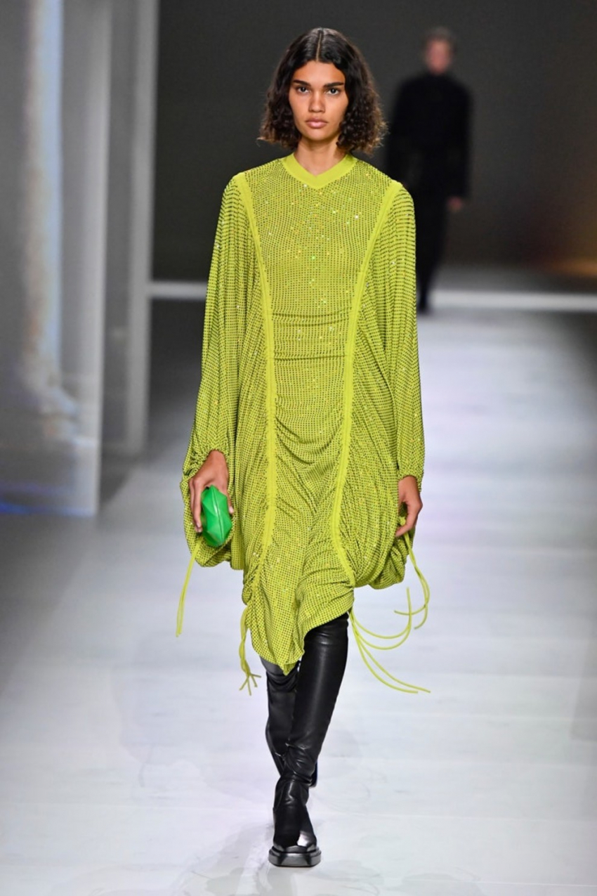 Miu Miu осень-зима 2020/2021Добавьте немного лаймаЛаймовый оттенок - уже не просто способ оживить гардероб, это ключ к главной палитре этого сезона. Этот жизнерадостный оттенок хорошо смотрится как в виде главного цвета в образе, так и как маленькая деталь. Обратите внимание на коллекцию Bottega Veneta, в которой Дэниел Ли показал как носить оттенок зеленого лайма.