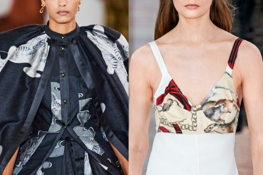 Prada осень-зима 2020/2021Анималистичный принтКогда речь идет об анималистичном принте, имеются ввиду не только их окрас, но и иллюстрации всех обитателей животного мира - от лисиц до обезьян. Посмотрите на коллекции Victoria Beckham, Loewe и Alexander McQueen для вдохновения.