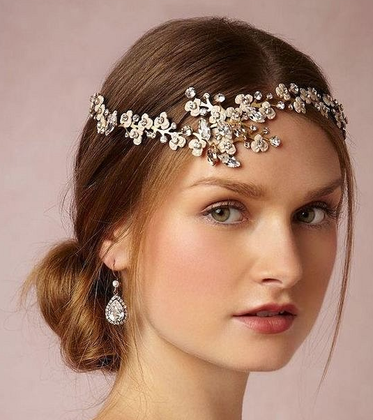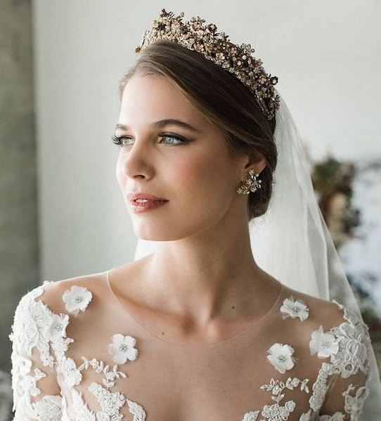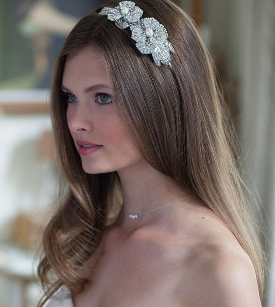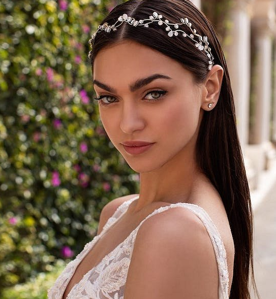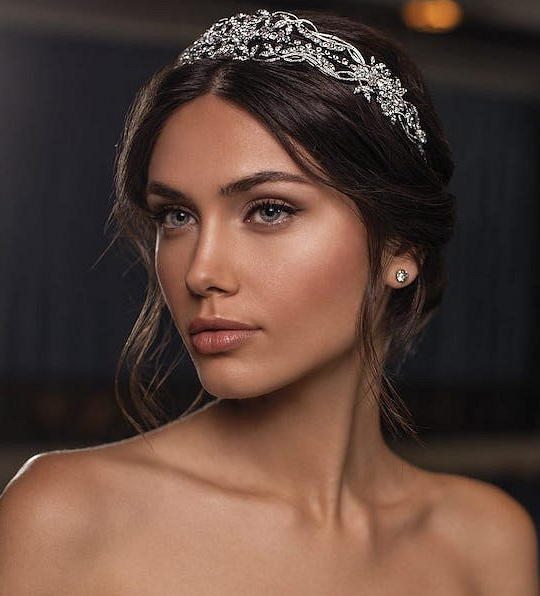 Укладки на шикарных длинных волосах с диадемой можно подобрать к свадебному платью в стиле ампир. Легкие волны и повязка в тон наряду помогут создать красивый образ самой настоящей греческой богини. Также можно сочетать распущенные ровные волосы в нижней части головы и плетение в верхней.