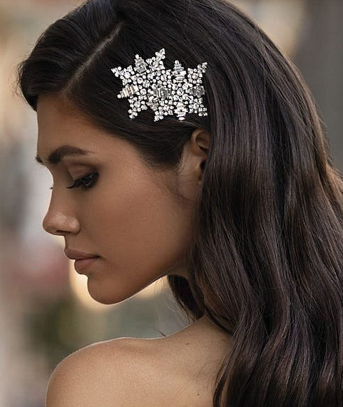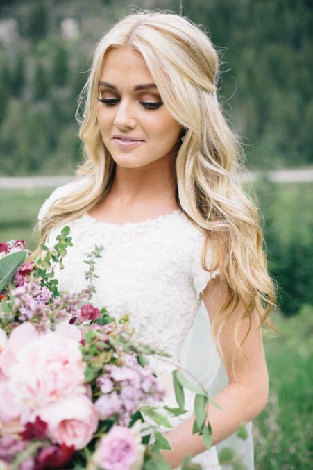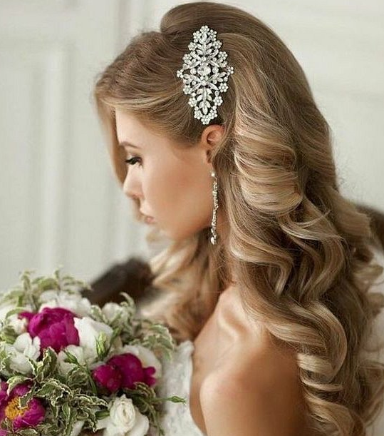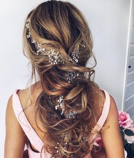 Такая свадебная прическа будет элегантно смотреться на длинных, слегка завитых волосах. По желанию укладку можно дополнить красивыми украшениями или другими свадебными аксессуарами.