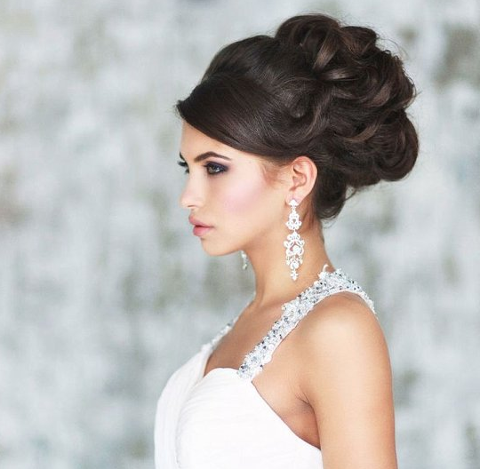 Очень красиво и торжественно выглядят высокие прически, выполненные на длинных волосах. Они помогут выгодно подчеркнуть утонченный образ невесты, изгиб ее плеч и красоту длинной шеи. Можно выполнять всевозможные пучки, «ракушки», узлы, делать сложные узоры из выложенных локонов.