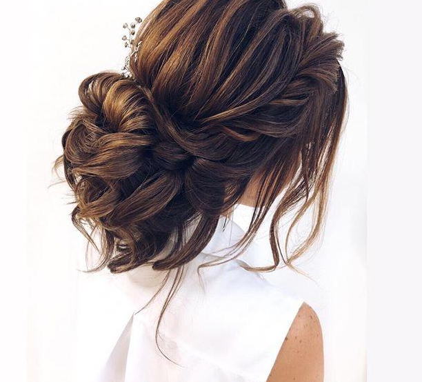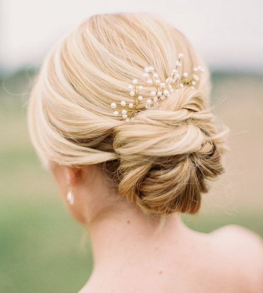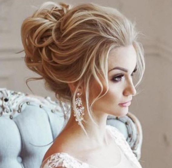 Обычный пучок из волос, который чаще всего встречается в повседневных образах, может быть частью свадебной прически. Его можно сделать высоко на макушке или же сформировать из слегка распущенного или гладкого хвоста, выполнить из объемных кос.