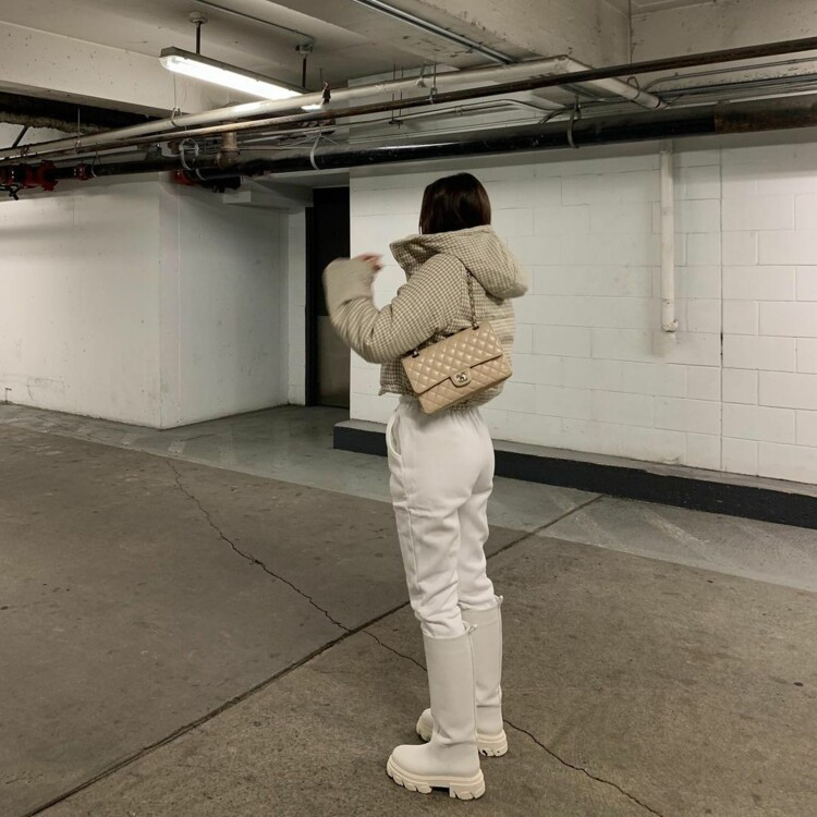 Ботинки и лоферы на массивной подошве выгодно подчеркнут утонченность силуэта – в таком случае советуем выбирать пуховики длины миди с объемными рукавами. Еще одним стильным сочетанием станут "дутые" ботинки, вторящие шарфам похожего кроя, – настоящий хит сезона.