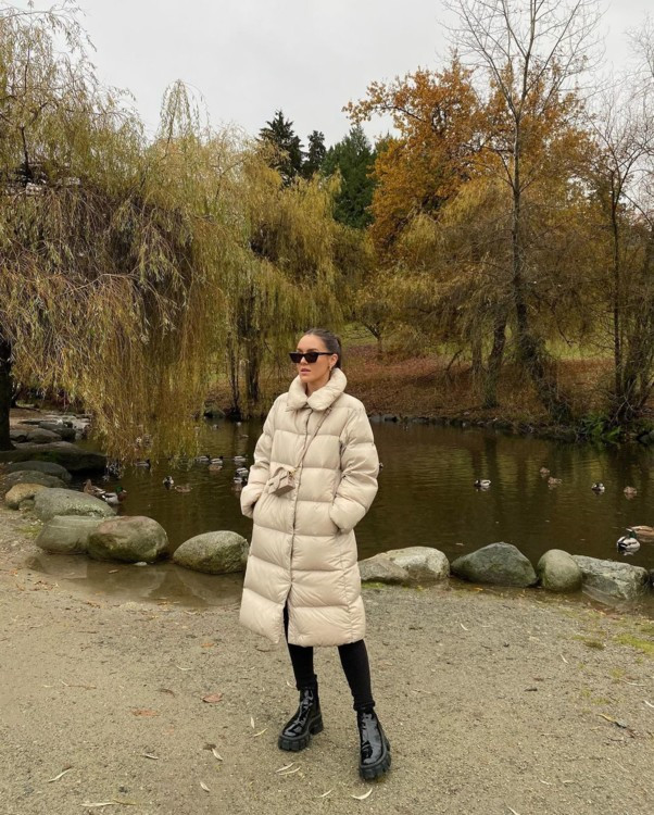 Streetstyle: с чем носить бежевый пуховик этой зимой - «Уличный стиль»