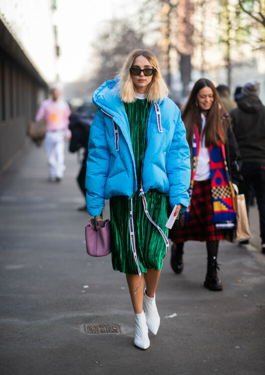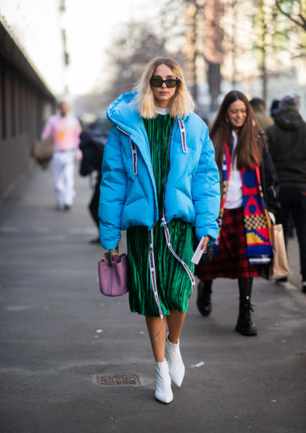 Streetstyle: как носить пуховики с платьями этой зимой - «Уличный стиль»